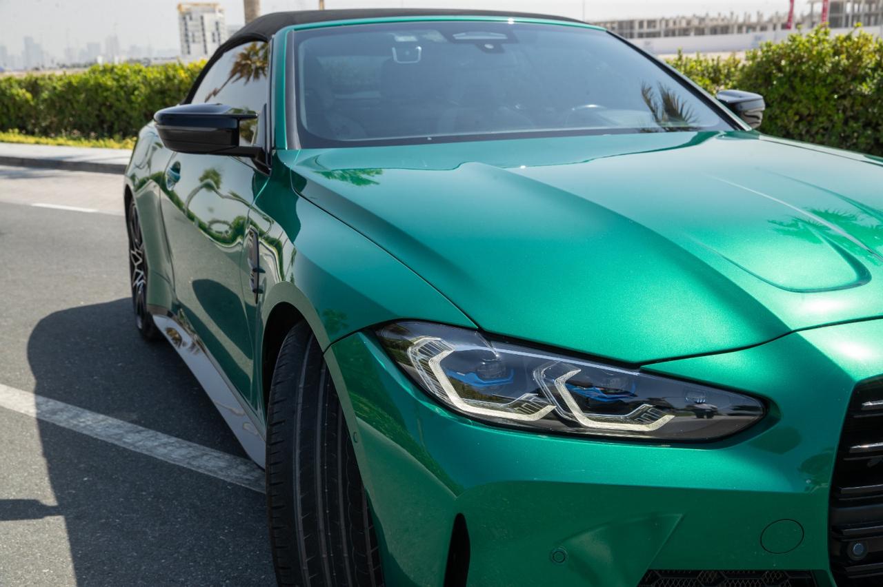 Rent BMW M4 Competition Convertible Green 2023 in Dubai, UAE, No Deposit , Free Delivery for the next price - AED 950 per day, And get a Great discount weekly or monthly . Rental cost includes basic insurance and standard mileage limit of 250 km/day or 1750 km/week or 7500 km/month (with overlimit charge AED 2 per additional km). So, don't wait any longer. If you want to drive this car - contact us for booking or any question right now.