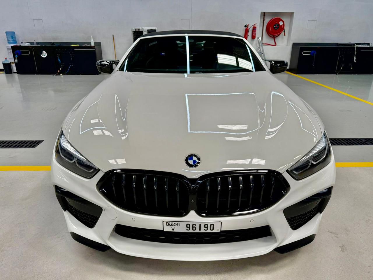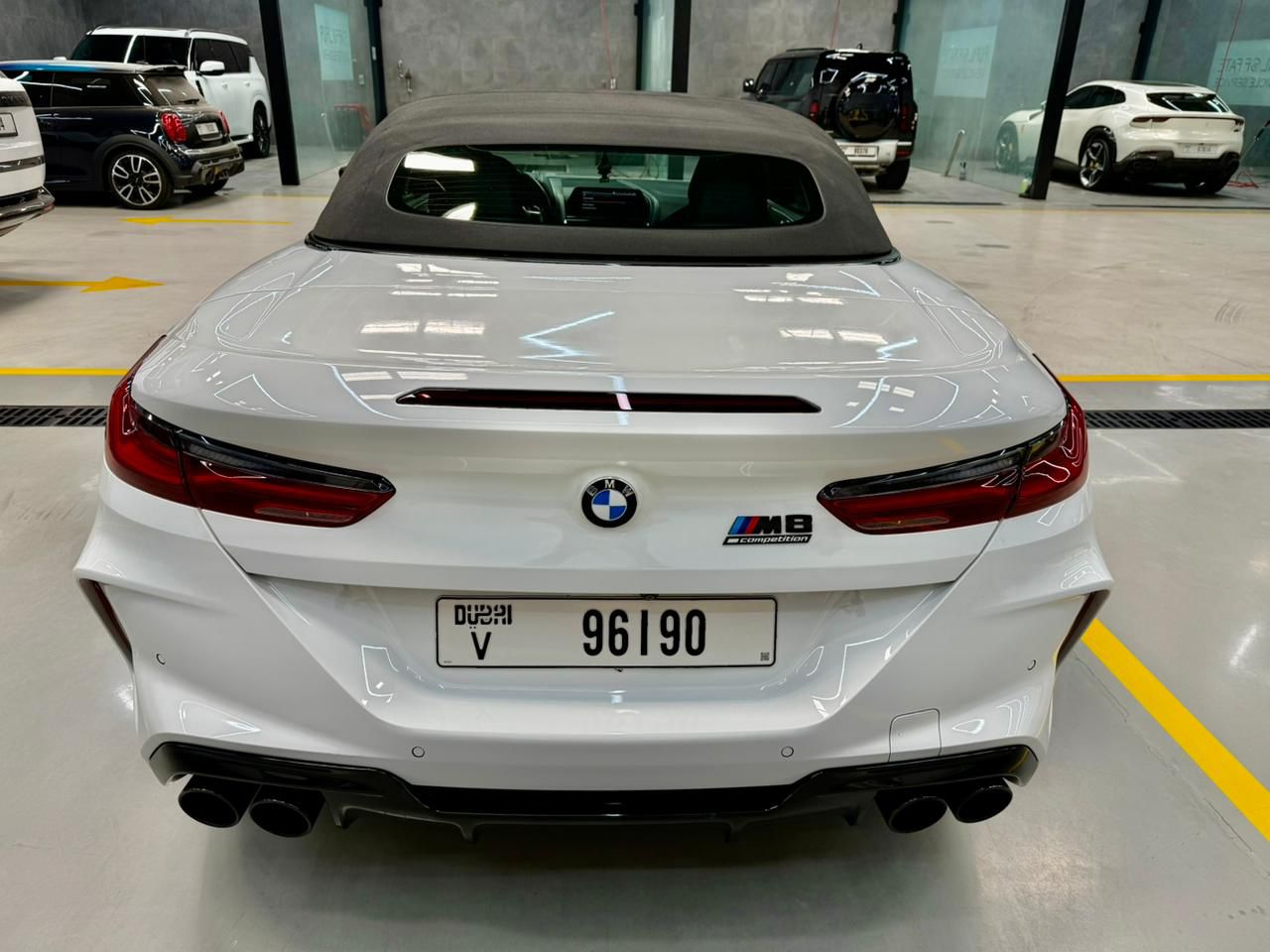 Rent BMW M8 Competition White V8 Convertible 2023 in Dubai, UAE, No Deposit , Free Delivery