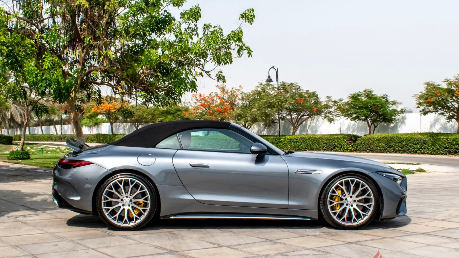 The Mercedes Benz SL 63 AMG Silver No Deposit Convertible Car is listed by Drive Square Car Rental. This 2-door Luxury Car fits 4 passengers and 3 medium-sized bag(s).