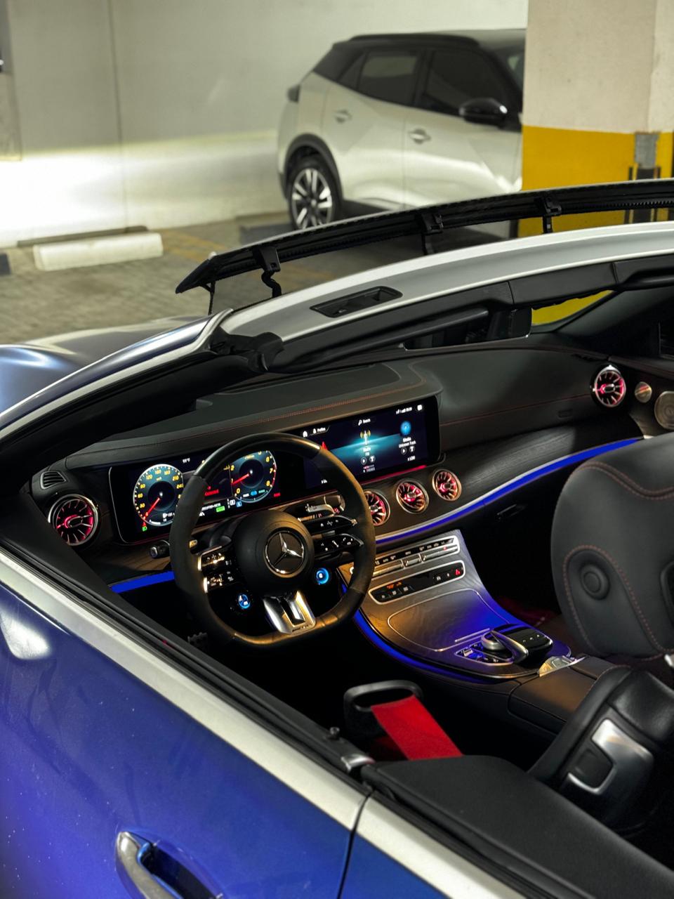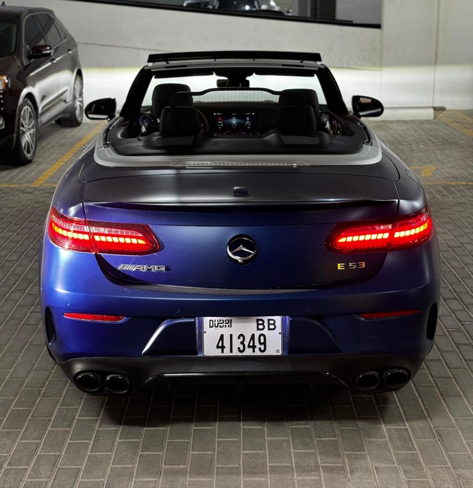 Rent Mercedes E 53 AMG Blue Cabriolet 2023 in Dubai, UAE, No Deposit , Free Delivery for the next price - AED 400 per day, And get a Great discount weekly or monthly . Rental cost includes basic insurance and standard mileage limit of 250 km/day or 1750 km/week or 7500 km/month (with overlimit charge AED 2 per additional km). So, don't wait any longer. If you want to drive this car - contact us for booking or any question right now.