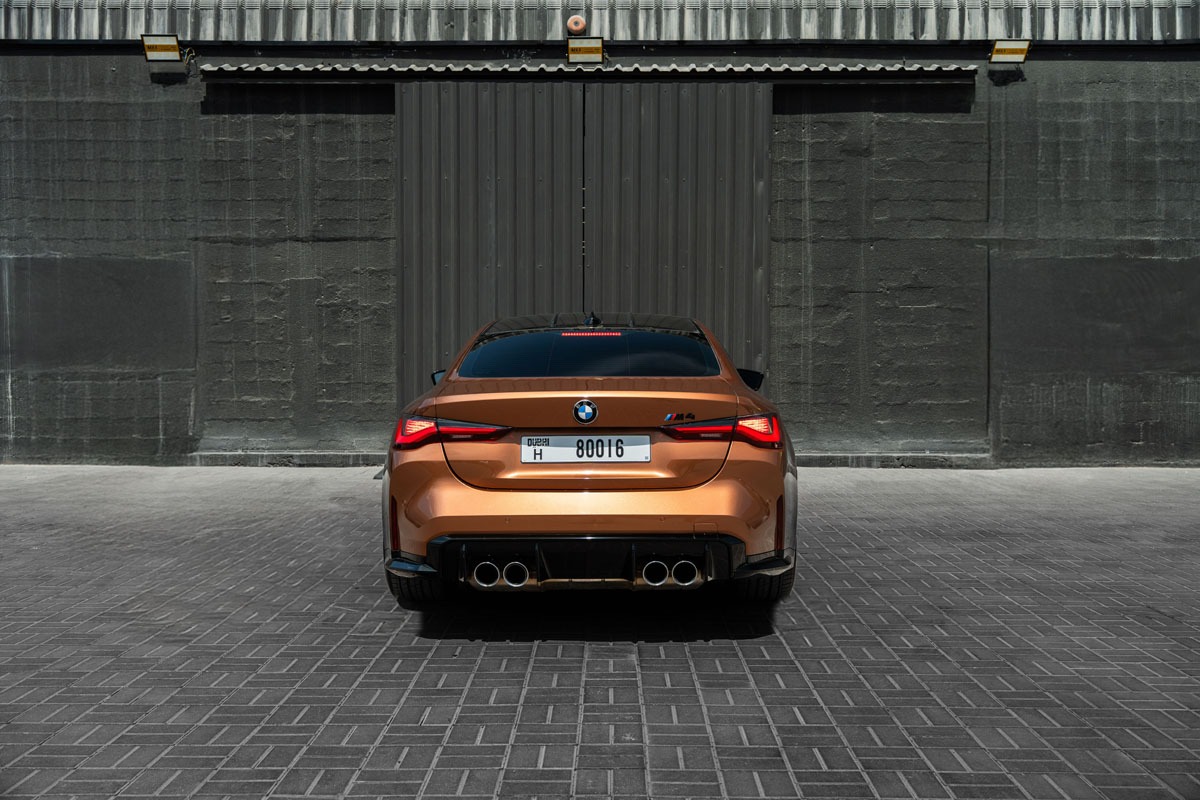 Rent BMW M4 Competition Gold without Deposit 2022 in Dubai, UAE, No Deposit , Free Delivery for the next price - AED 700 per day, And get a Great discount weekly or monthly . Rental cost includes basic insurance and standard mileage limit of 250 km/day or 1750 km/week or 7500 km/month (with overlimit charge AED 2 per additional km). So, don't wait any longer. If you want to drive this car - contact us for booking or any question right now.