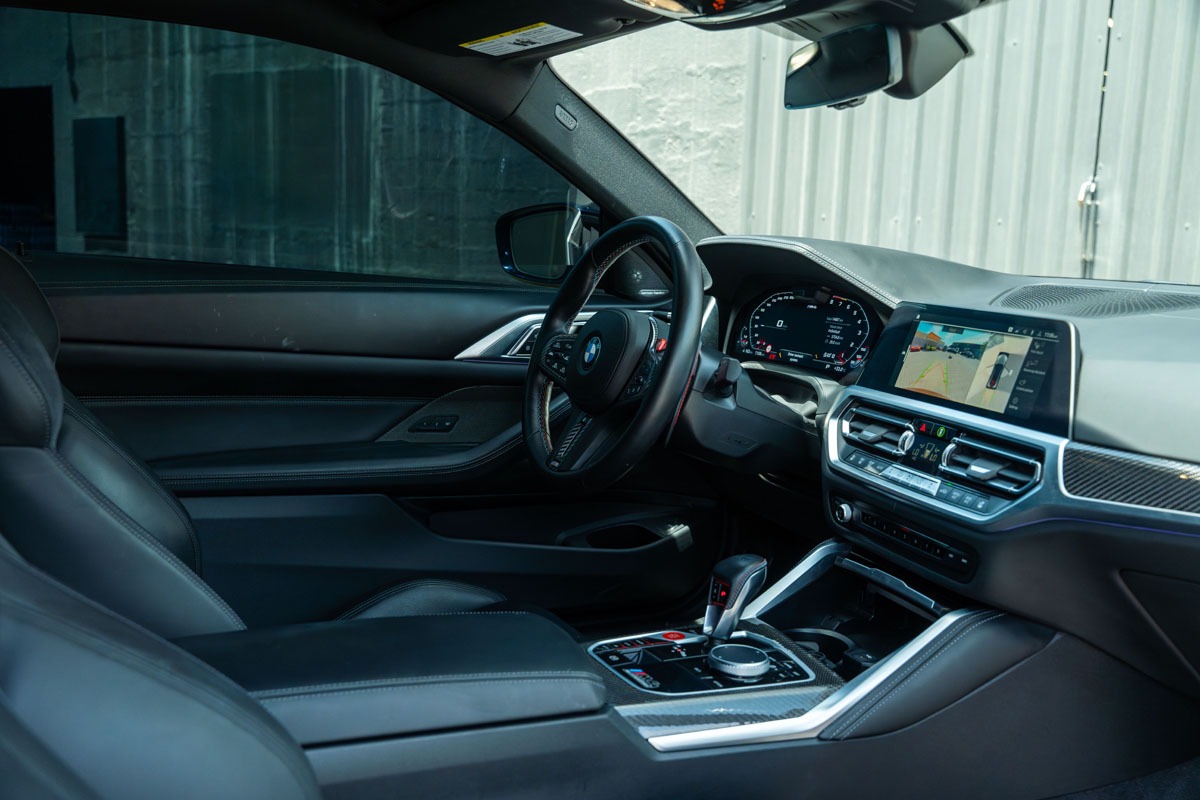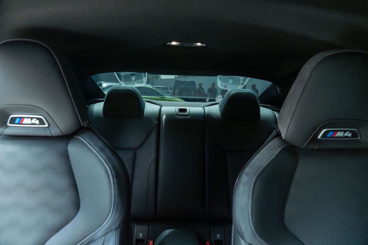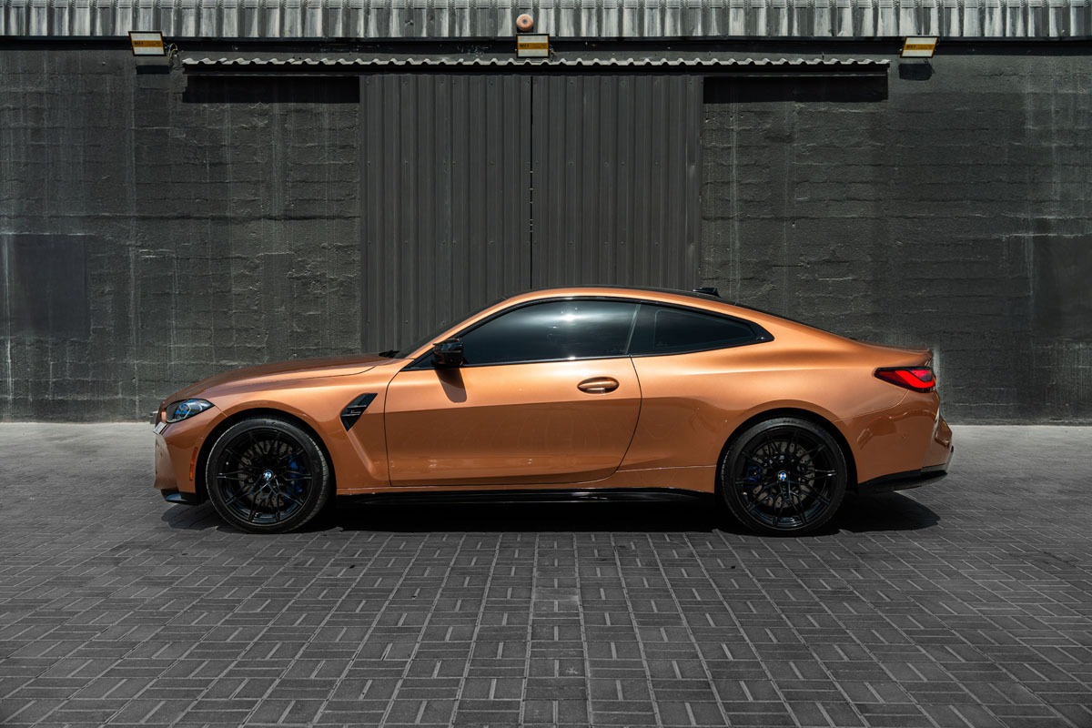 The BMW M4 Competition Gold without Deposit Coupe Car is listed by Drive Square Car Rental. This 2-door Luxury Car fits 4 passengers and 2 medium-sized bag(s).