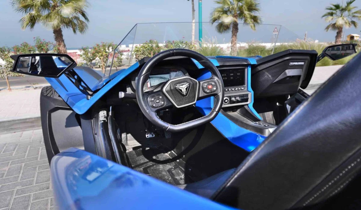 Rent Polaris Slingshot R Blue without Deposit 2021 in Dubai, UAE, No Deposit , Free Delivery for the next price - AED 700 per day, And get a Great discount weekly or monthly . Rental cost includes basic insurance and standard mileage limit of 250 km/day or 1750 km/week or 7500 km/month (with overlimit charge AED 2 per additional km). So, don't wait any longer. If you want to drive this car - contact us for booking or any question right now.