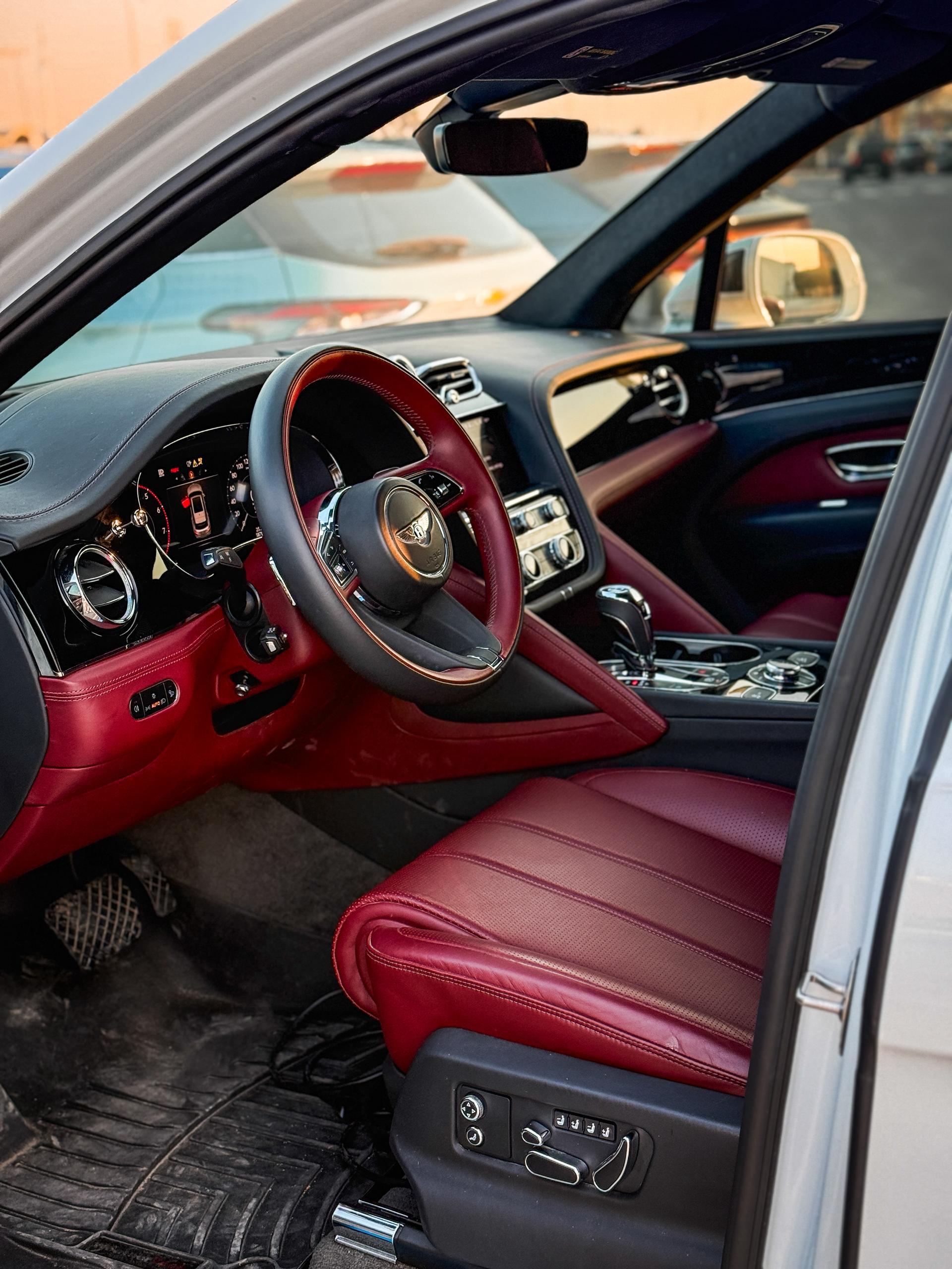 The Bentley Bentayga White & Red Luxury Car is listed by Drive Square Car Rental. This 4-door Luxury Car fits 5 passengers and 4 medium-sized bag(s).