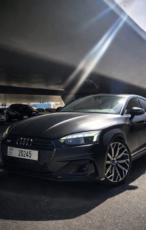 The Audi A5 Black Matte Monthly Best Price Sedan Car is listed by Drive Square Car Rental. This 4-door Luxury Car fits 5 passengers and 2 medium-sized bag(s).