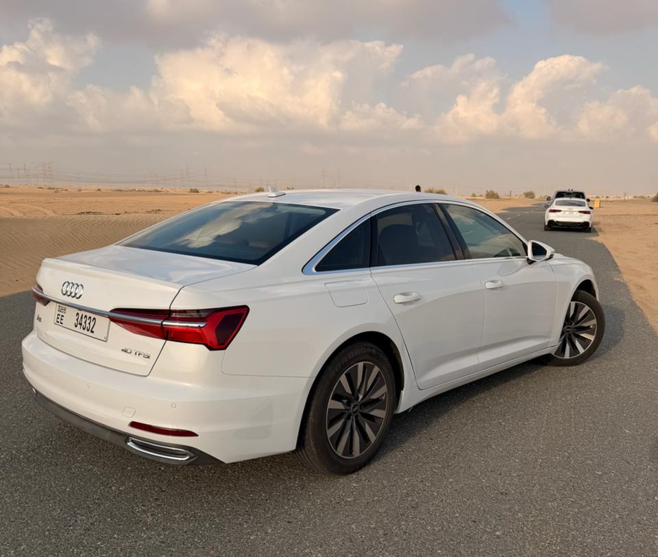 The Audi A6 White Monthly Best Price Sedan Car is listed by Drive Square Car Rental. This 4-door Luxury Car fits 5 passengers and 3 medium-sized bag(s).