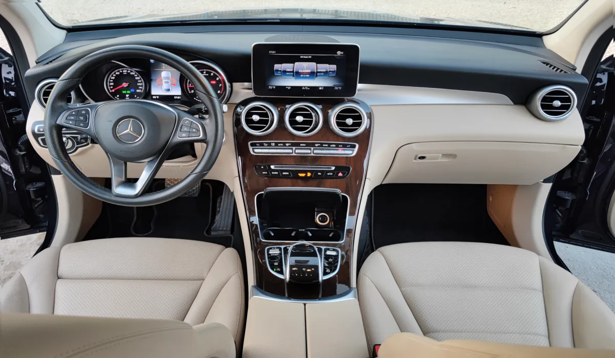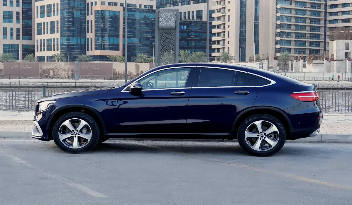 The Mercedes Benz GLC300 Sedan Car is listed by Drive Square Car Rental. This 4-door Luxury Car fits 5 passengers and 2 medium-sized bag(s).