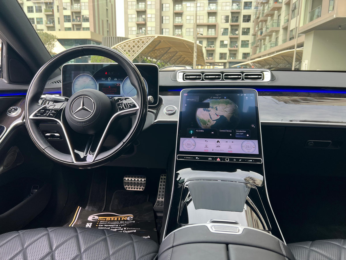 The S500 is powered by a 3.0L inline-6 turbo engine with EQ Boost technology. It delivers 429 horsepower with the smoothness of silk. You won't hear the engine; you will simply feel the effortless surge of power as you merge onto Sheikh Zayed Road.