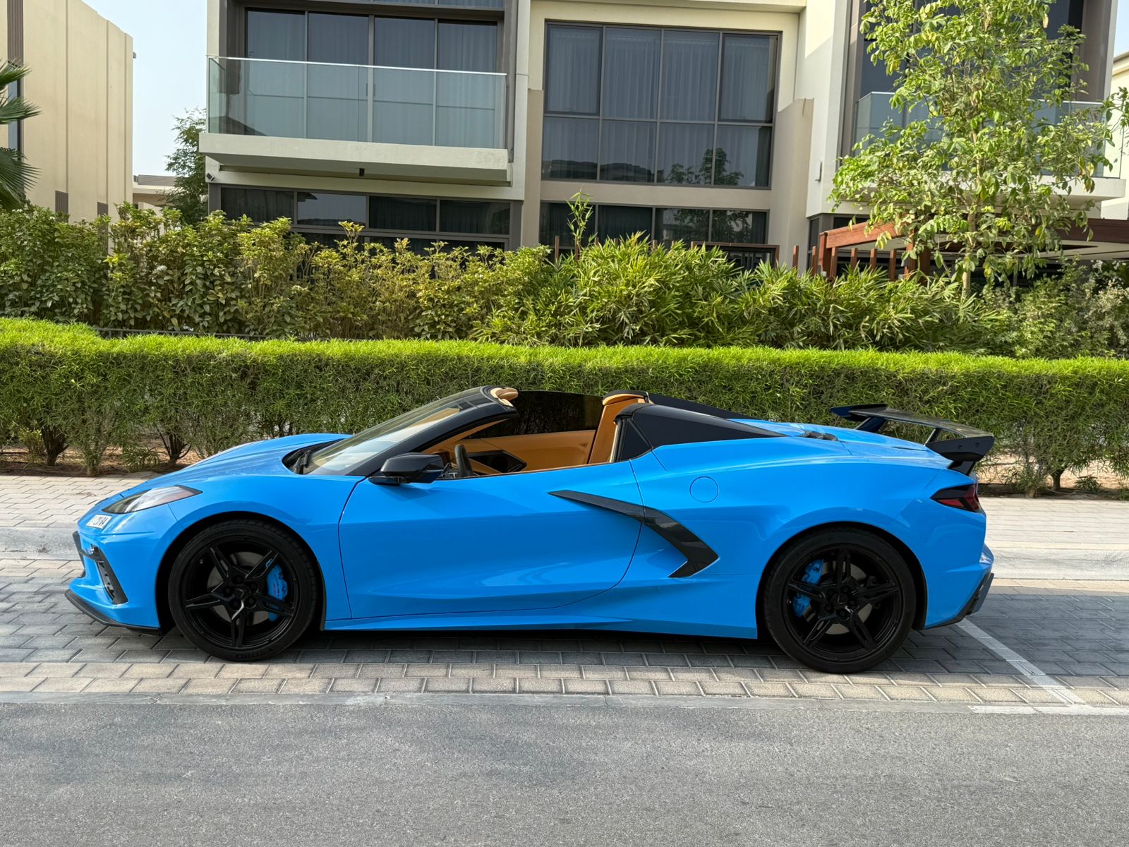 The DriveSquare Advantage: When you rent the Chevrolet Corvette C8 Automatic Roof 3LT Stingray blue 2023 , you don't just get a car; you get a seamless experience with Free Delivery to your doorstep and comprehensive basic insurance included.