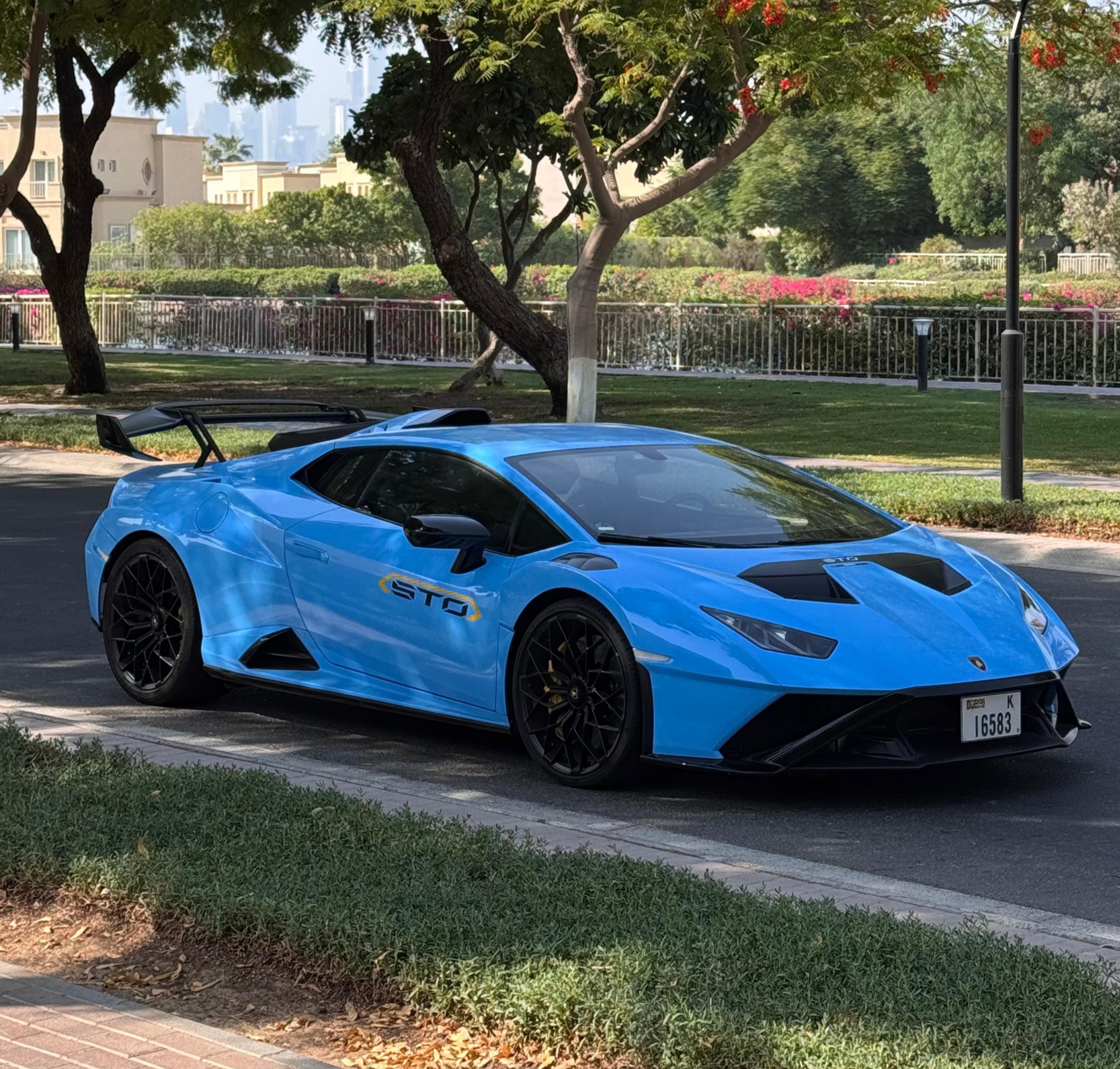 Rent Lamborghini Huracan STO Coupe Blue Best Price 2024 in Dubai, UAE, No Deposit , Free Delivery for the next price - AED 1999 per day, And get a Great discount weekly or monthly . Rental cost includes basic insurance and standard mileage limit of 250 km/day or 1750 km/week or 7500 km/month (with overlimit charge AED 2 per additional km). So, don't wait any longer. If you want to drive this car - contact us for booking or any question right now.
