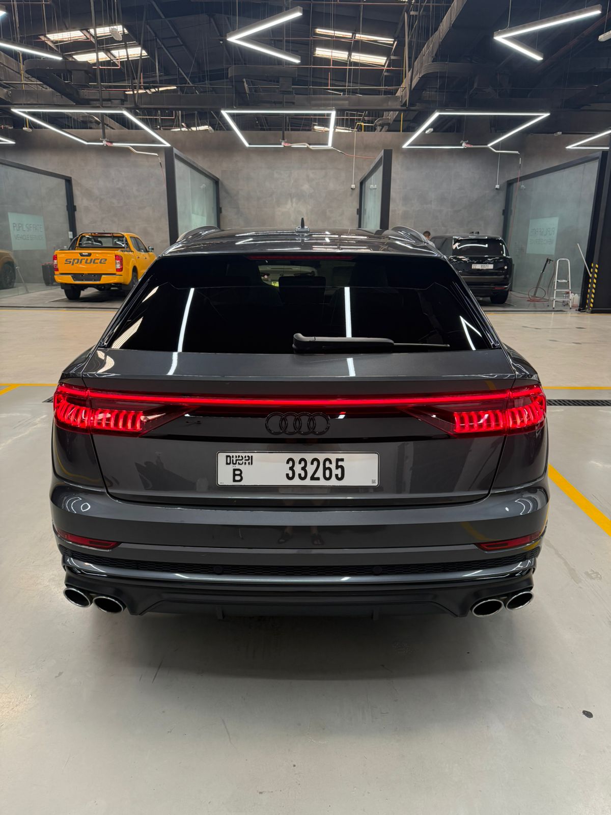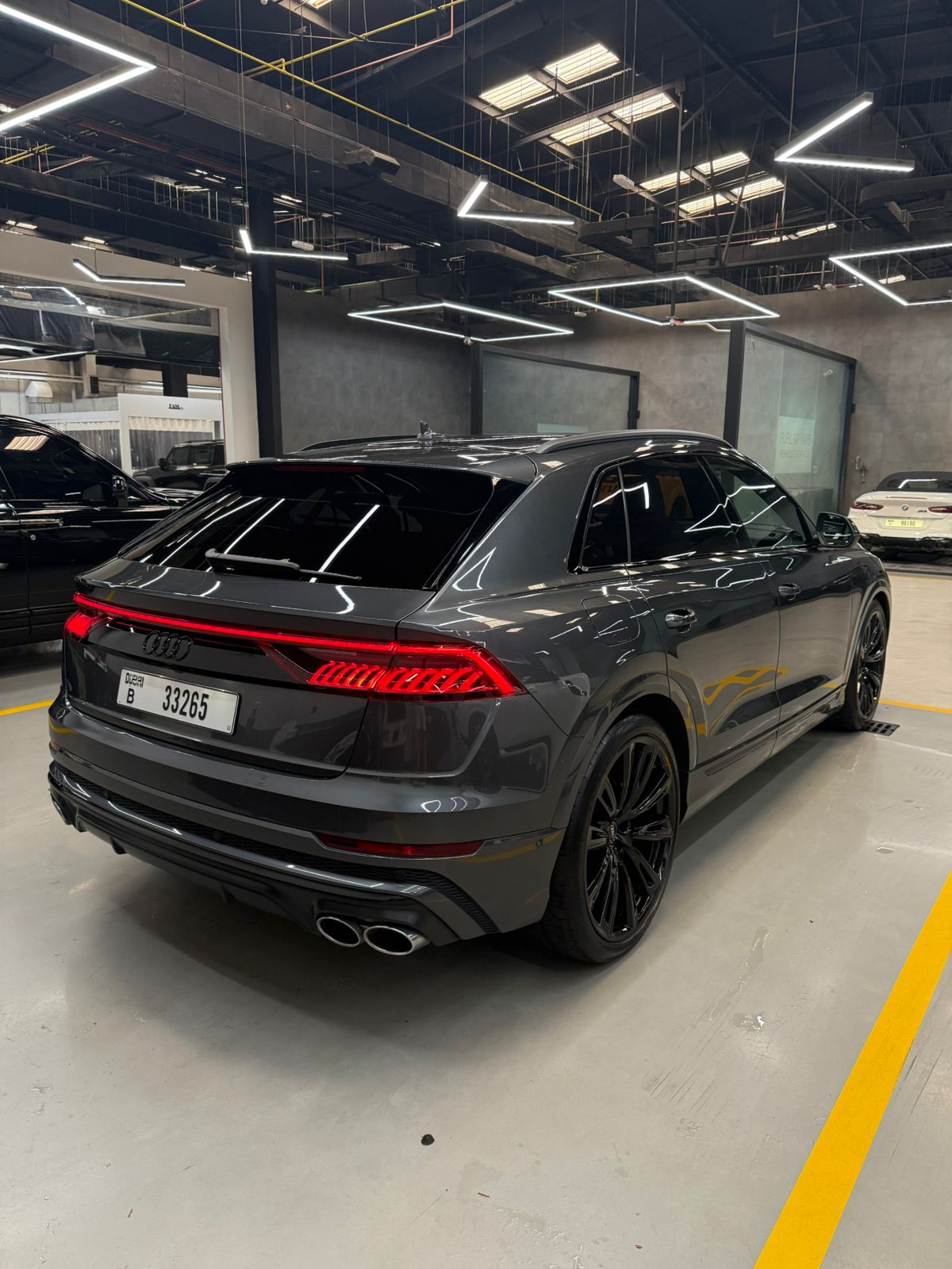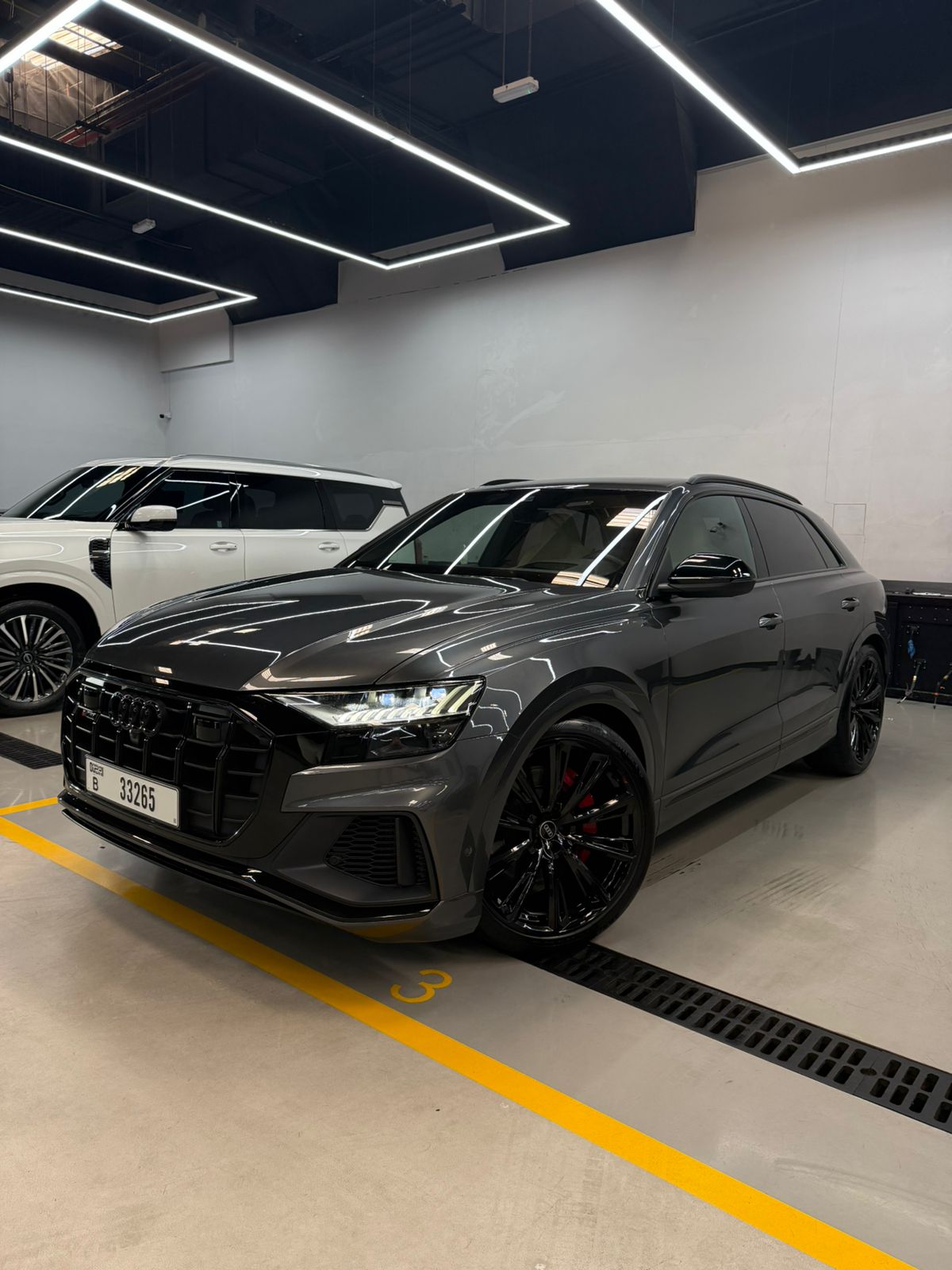 The AUDI SQ8 Grey Best Price SUV Car is listed by Drive Square Car Rental. This 4-door Luxury Car fits 5 passengers and 3 medium-sized bag(s).