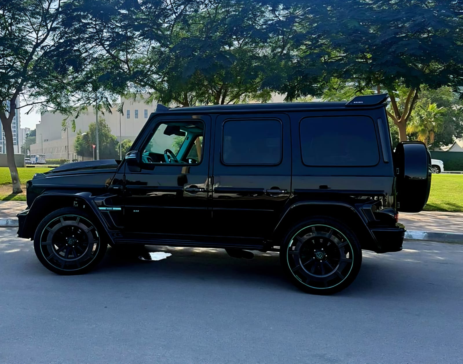 The Mercedes G Brabus Kit Black SUV Car is listed by Drive Square Car Rental. This 4-door Luxury Car fits 5 passengers and 3 medium-sized bag(s).