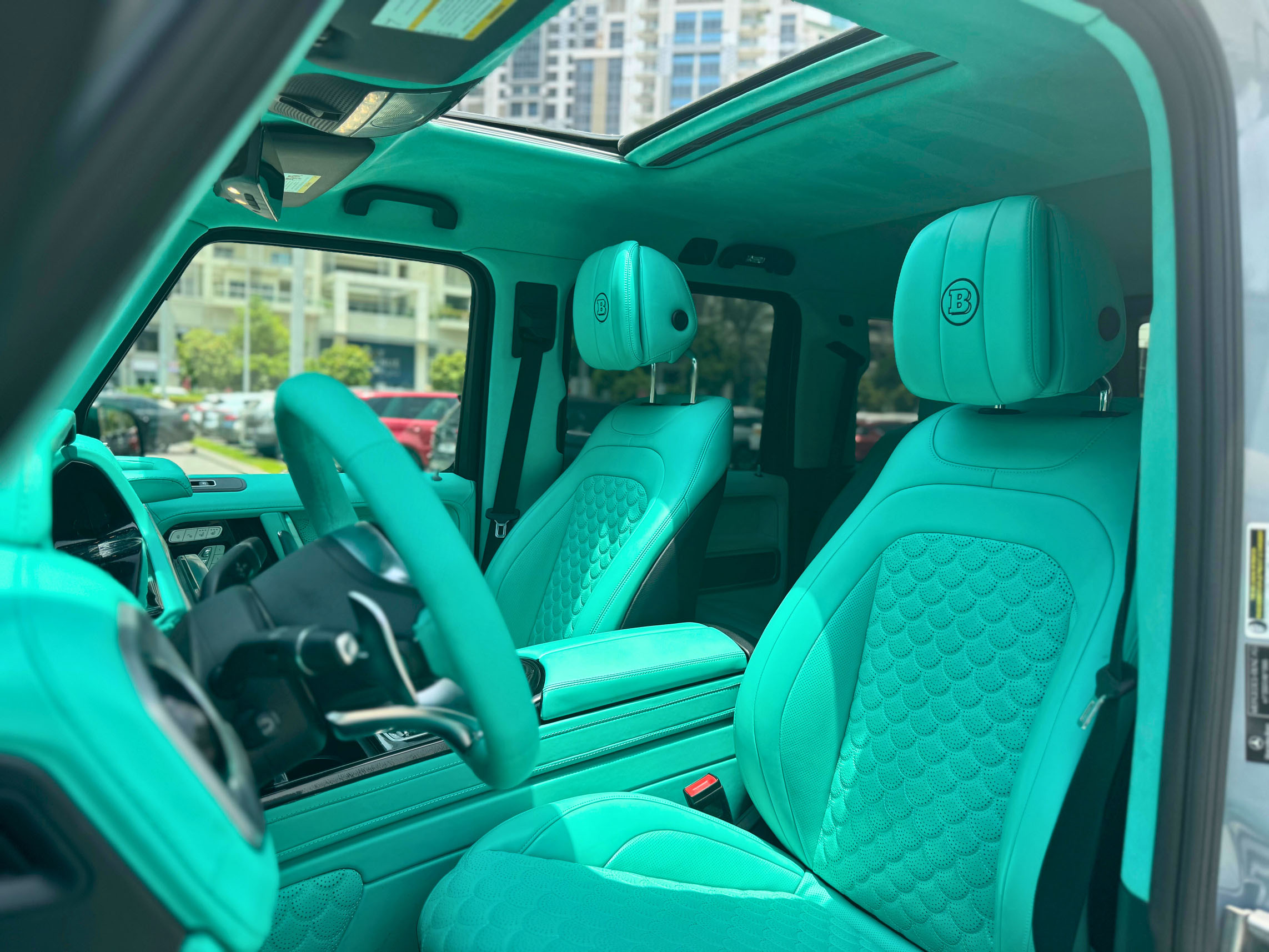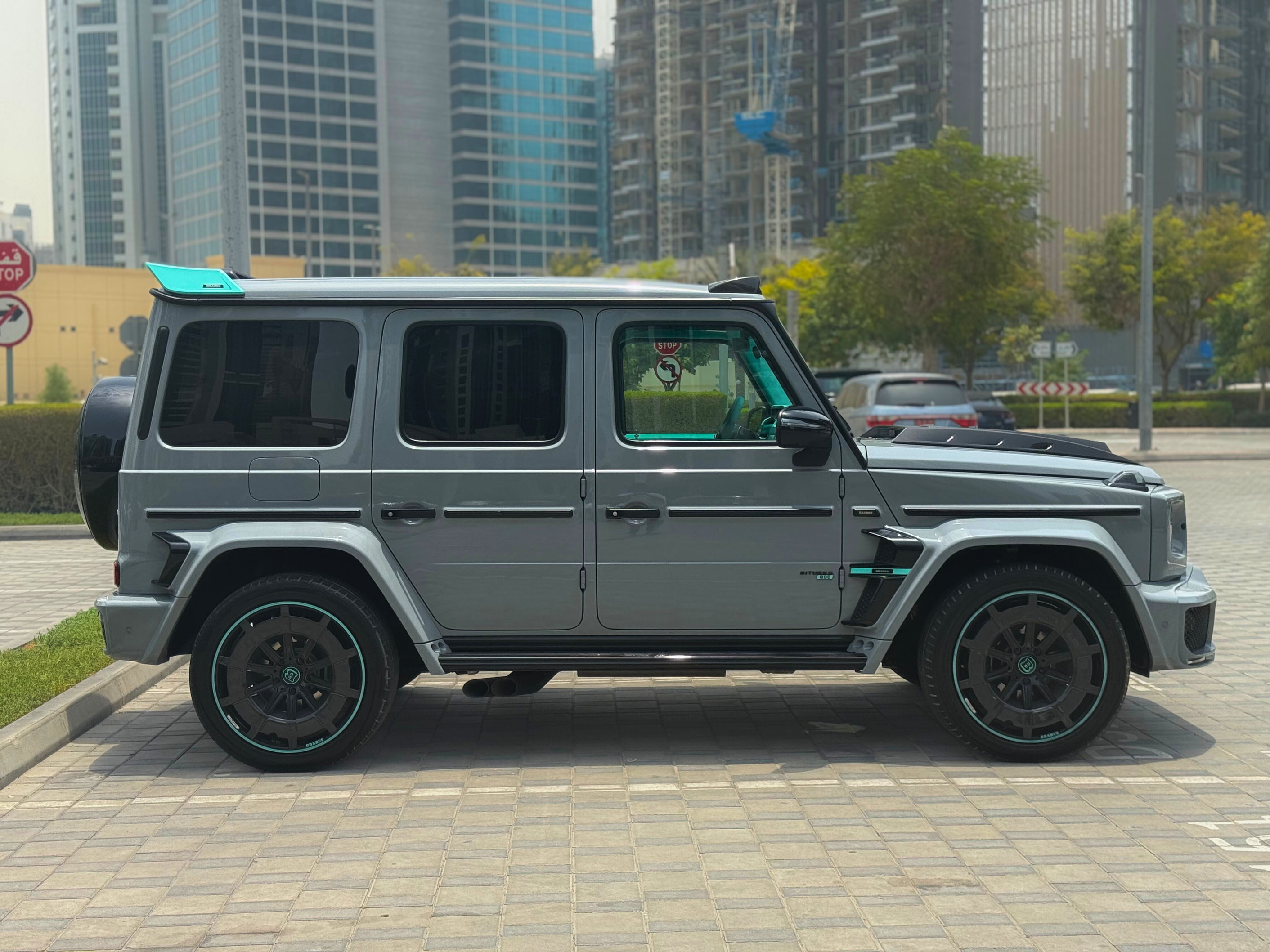The Mercedes G-Class Brabus G800 Kit Grey & Tiffany SUV Car is listed by Drive Square Car Rental. This 4-door Luxury Car fits 5 passengers and 3 medium-sized bag(s).