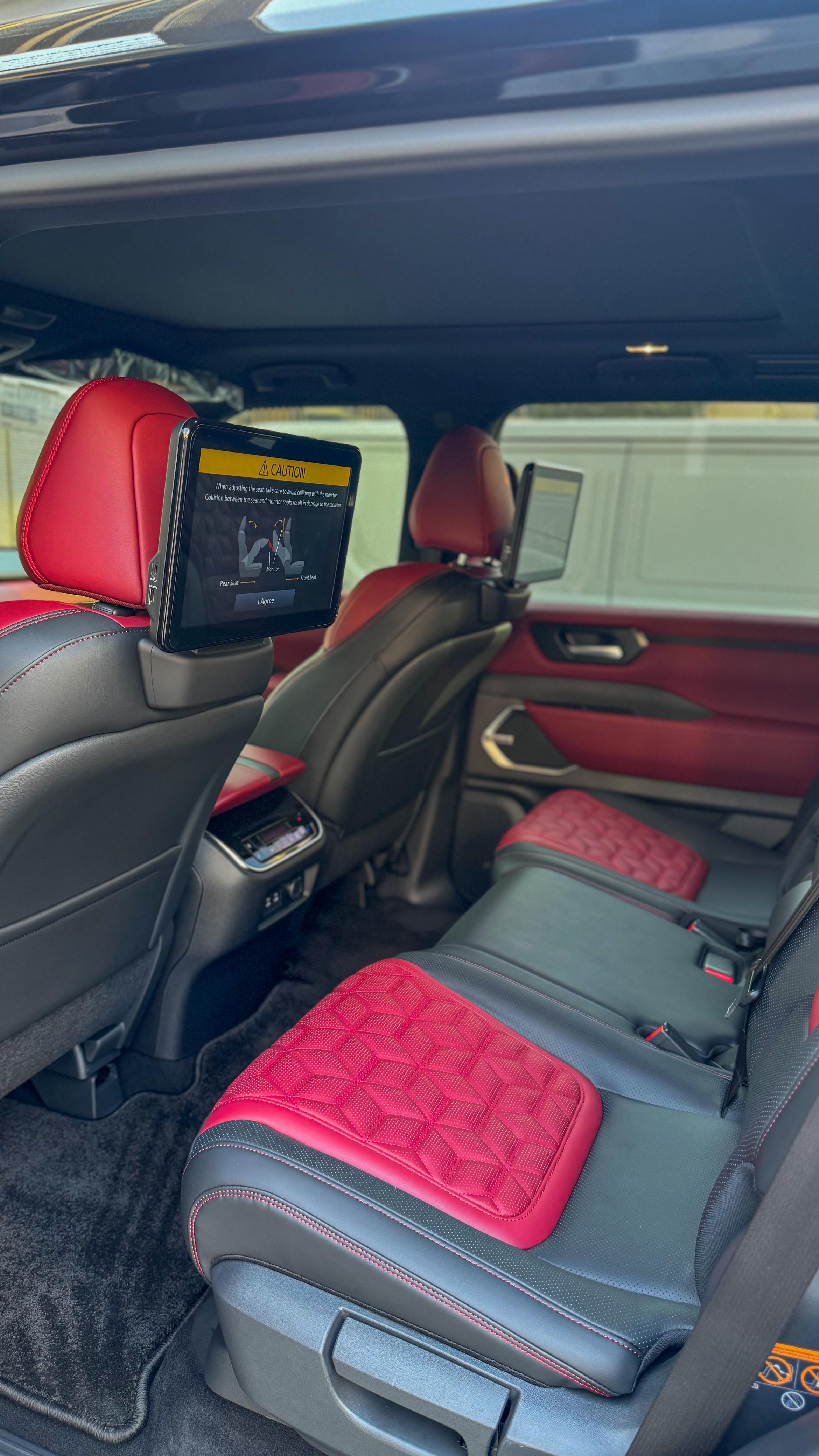 The Nissan Patrol Platinum Black interior Red SUV Car is listed by Drive Square Car Rental. This 4-door Luxury Car fits 7 passengers and 4 medium-sized bag(s).